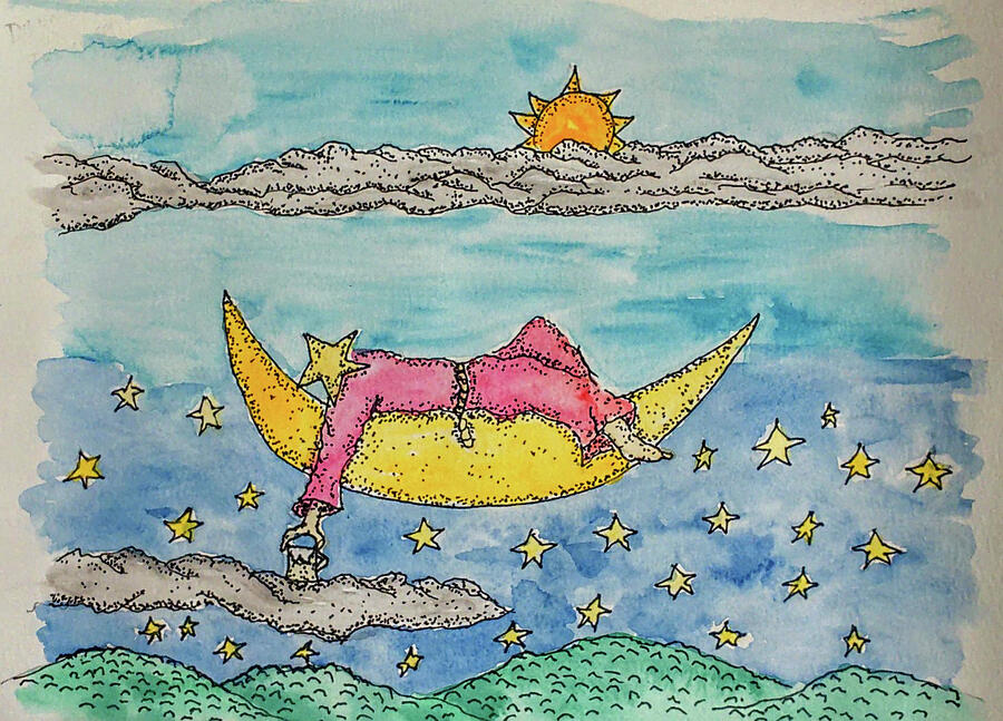 Lazy on the Moon; The night sky had been exceptionally busy this last month with all the hustle and bustle of eclipses, solar storms, dark stars, and meteor showers. It was all a bright star could do to keep up with all the goings on. Suddenly, she watched as Star after Star fell from the sky to the Earth below. They had burned out from all the pressure of burning brightly in the sky each and every night. Now, our star friend here was worried that she might meet the same fate as all her other hard-shining friends. Not wanting this to happen to her, one night, she took notice of a crescent Moon hanging in the heavens all by itself. Maybe I do need, and I know for sure, I sure do deserve a break, she thought to herself. So she grabbed a cold beverage, placed it on a nearby cloud, and lay herself across the Moon. The Moon had no objection, thank goodness. So there she lay with her feet up and a cold one, basking in the night sky. After a relaxing evening, she felt much better and was all ready to shine brightly in the heavens with her other hard-shining star brothers and sisters. The Star’s suggestion to you and me is that if you are working too hard and feel that you are in need of a break, then you should pull up a Moon, kick off your shoes, grab a drink, and enjoy the ride. https://fineartamerica.com/featured/lazy-on-the-moon-david-krafcik.html