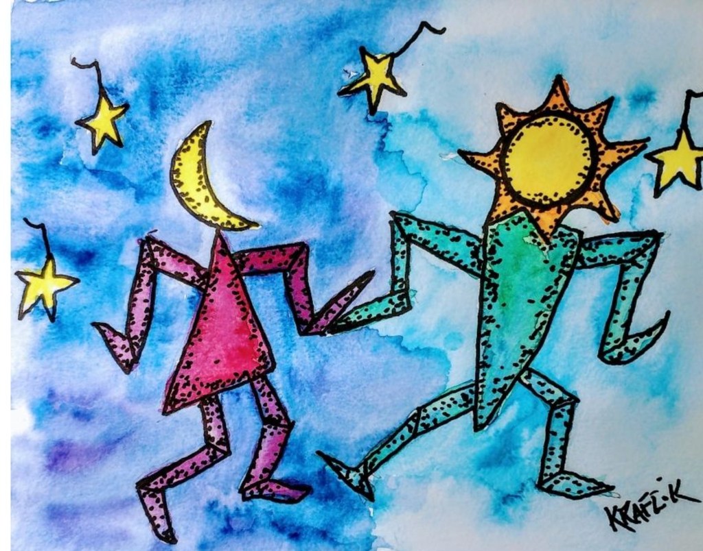When the Moon Danced with the Sun: The dance began before they met. It started with the Sun chasing the Moon around the world. When the Sun could not take the hunt any longer, it finally called out to the Moon. They pause their chase to look at each other. “What is it?” asked the Moon. Only smiling, the Sun holds out his hand for the Moon to take. The stars in the sky all assemble to watch what is to happen. Below them, the ocean starts to rise and fall. As it does, the sea’s voice creates music with its roar and the crash of its waves lashing the shore. With that, the Sun and Moon begin to dance. Shining in the sky, dancing the night away. When morning beckoned, the dance came to an end. Bowing to one and the other, the time had come, once again, for the Sun and Moon to go their separate ways. For each to take turns brightening the sky. https://www.redbubble.com/i/poster/When-the-Moon-Danced-with-the-Sun-by-AngelWingArt/179187961/flk2