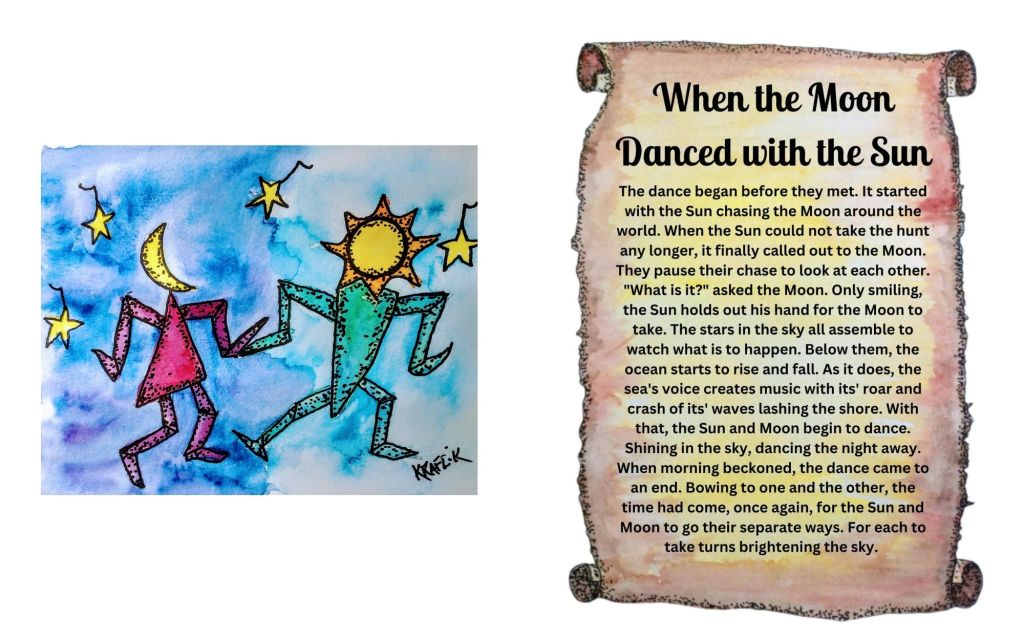 The Moon was her, and she was the Moon. Born during a full Moon, with a sky filled with many stars, she was given the name of Luna. After that day, she was also to be known as the Queen of the Night Sky, a title bestowed upon her because of her ability to not only talk with the Moon but also understand the Moon. In that way, they were one and the same. The Moon was her, and she was the Moon. Her name is Luna, Queen of the Night Sky. Some legends have it that on the nights that the Moon was to become full in the sky, Queen Luna would climb to the Mountain of the Heavens, the highest mountain peak in all the realm. There, she would wait until the Moon had risen in the eastern sky, slowly climbing to a position directly above her. When that was achieved, Luna, Queen of the Night Sky, would wave at the Moon, and the Moon would smile back at her. She would then proclaim, “I have missed you, my friend.” The Moon would always answer, “As I have you, Luna.” Then Queen Luna, dressed in a gown of midnight blue, flowing with sparkling stars, lowered herself into a crouch. Her wings, shaped like leaves, with the colors of autumn: deep red and gold. Then, with a mighty heave, leaped high into the night sky. Her wings fluttered until she touched the Moon. As they traveled across the midnight sky, the Queen of the Night Sky and the Moon would become as one, and the Moon would fill her with the knowledge of the cosmos. As the evening drew to a close and dawn came upon them, the Moon gently placed the Queen back down on top of the Mountains of the Heavens. She bowed and smiled, ‘Thank you, Moon, for the lovely evening.” The Moon winked and replied, “You are always welcome, my Queen of the Night Sky.” Queen Luna opened her arms and asked, “Until the next time.” The Moon laughed and said down to her, “It’s a date.” And with that, the Moon retreated to its resting place for the day, and Luna walked slowly from the mountain peak back to her home, where she would eagerly await the next rising of the full Moon. “A captivating fantasy story, enchanting readers with the love shared between the Queen and the Moon.”